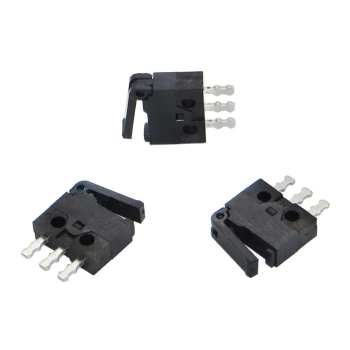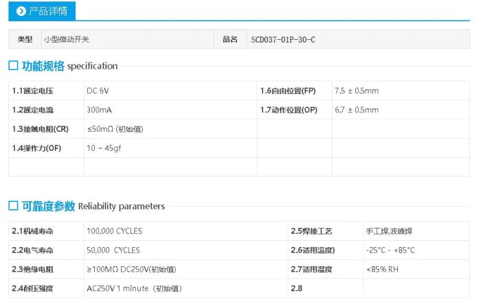 小型微动开关(检测开关) 轻触 滑动开关是具有微小接点间隔和快动机构,用规定的行程和规定的力进行开关动动作的接点机构,用外壳覆盖,其外部有驱动杆的一种开关,因为其开关的触点间距比较小,故名微动开关,又叫灵敏开关。