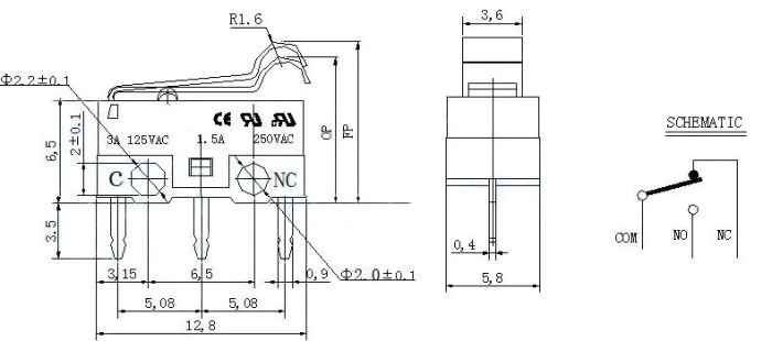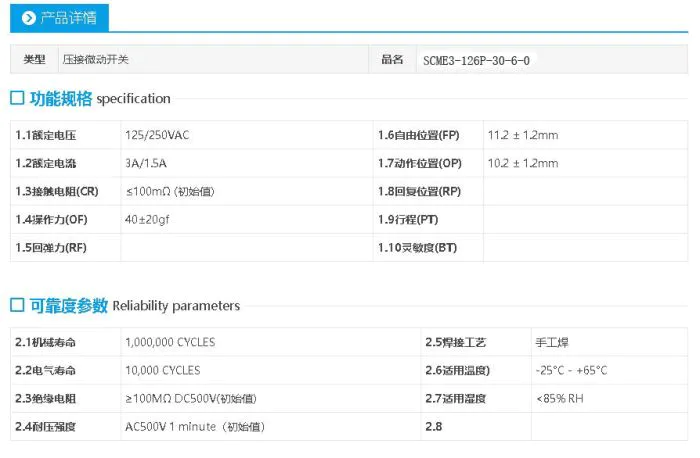 小微动开关(R型杠杆电子开关) 轻触 滑动开关是具有微小接点间隔和快动机构,用规定的行程和规定的力进行开关动动作的接点机构,用外壳覆盖,其外部有驱动杆的一种开关,因为其开关的触点间距比较小,故名微动开关,又叫灵敏开关。