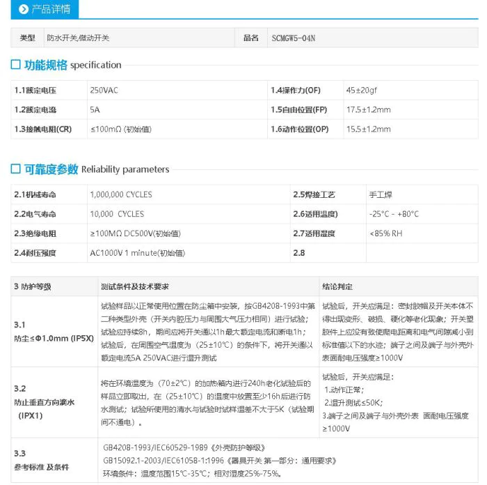 防水微动开关(R型杠杆汽车电子元件) 轻触 滑动开关是具有微小接点间隔和快动机构,用规定的行程和规定的力进行开关动动作的接点机构,用外壳覆盖,其外部有驱动杆的一种开关,因为其开关的触点间距比较小,故名微动开关,又叫灵敏开关。
