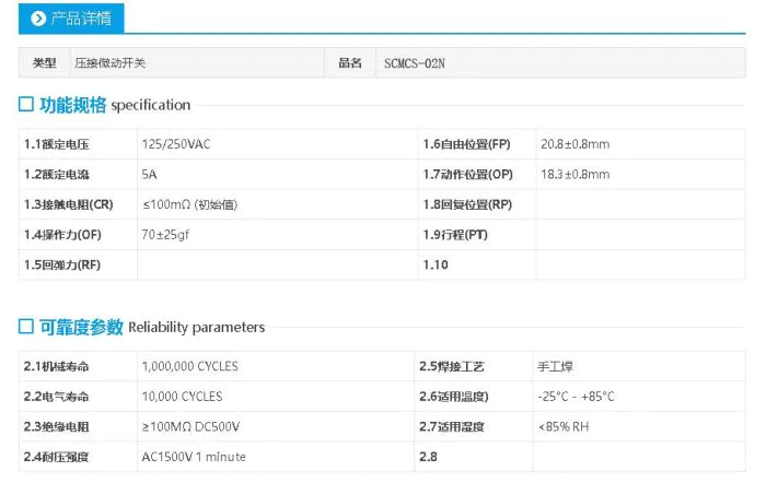 大微动开关(直杠杆电子开关元件) 轻触 滑动开关是具有微小接点间隔和快动机构,用规定的行程和规定的力进行开关动动作的接点机构,用外壳覆盖,其外部有驱动杆的一种开关,因为其开关的触点间距比较小,故名微动开关,又叫灵敏开关。