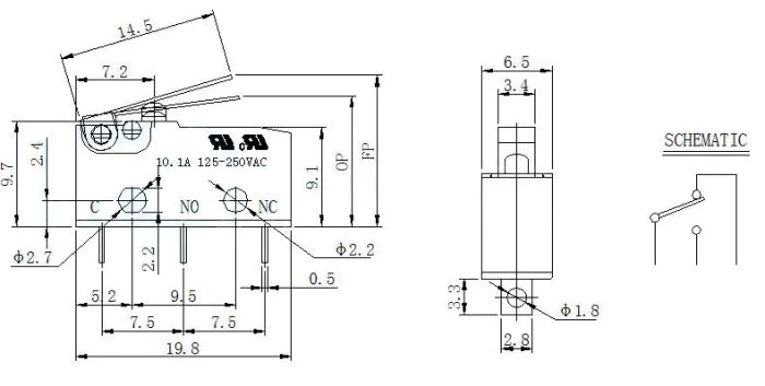 微动开关(短杠杆电子开关元件) 轻触 滑动开关是具有微小接点间隔和快动机构,用规定的行程和规定的力进行开关动动作的接点机构,用外壳覆盖,其外部有驱动杆的一种开关,因为其开关的触点间距比较小,故名微动开关,又叫灵敏开关。